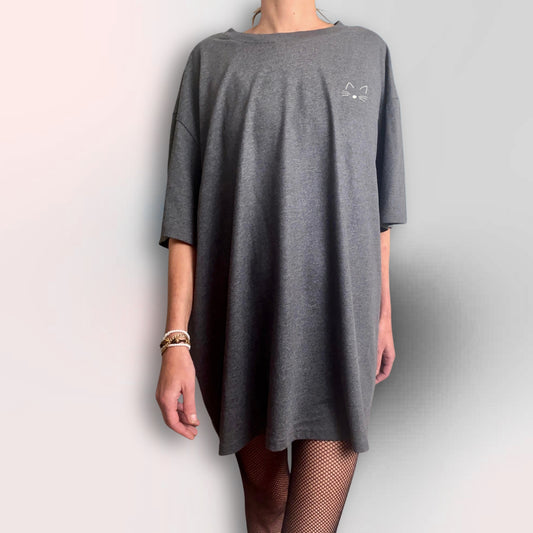 CAT, T-Shirt Kleid, oversized geschnitten, lässiges Grau, Minikleid mit Katzen Micro-Print