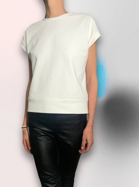 Kurzarm-Sweater03, kuschelig weiches Sweatshirt, Offwhite, mit überschnittenen Schultern, cosy Sweater