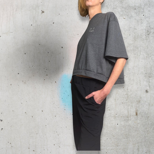 Kurzarm-Sweater04, kuschelig weiches Sweatshirt, Schwarz, mit überschnittenen Schultern, cosy Sweater (Kopie)
