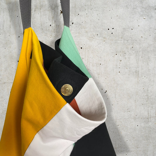 OVERSIZEDShopper.1. Patchwork.BAG aus Sweatshirt-Stoff, Mustard, Offwhite, Schwarz, Grün