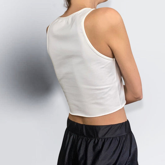 V-NECK.CropTop, Weiss.2. V-Neck Top mit Bündchen, organic cotton
